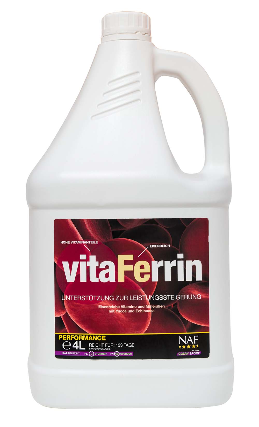 Die Veterinär- und Ernährungsspezialisten von NAF haben vitaFerrin als geeignete und wirksame Nährstoffslösung entwickelt, um das Leistungsniveau der Pferde zu optimieren. vitaFerrin ist eisenreich und mit Vitaminen und Mineralstoffen angereichert, um das Trainings- und Leistungspotential zu maximieren.